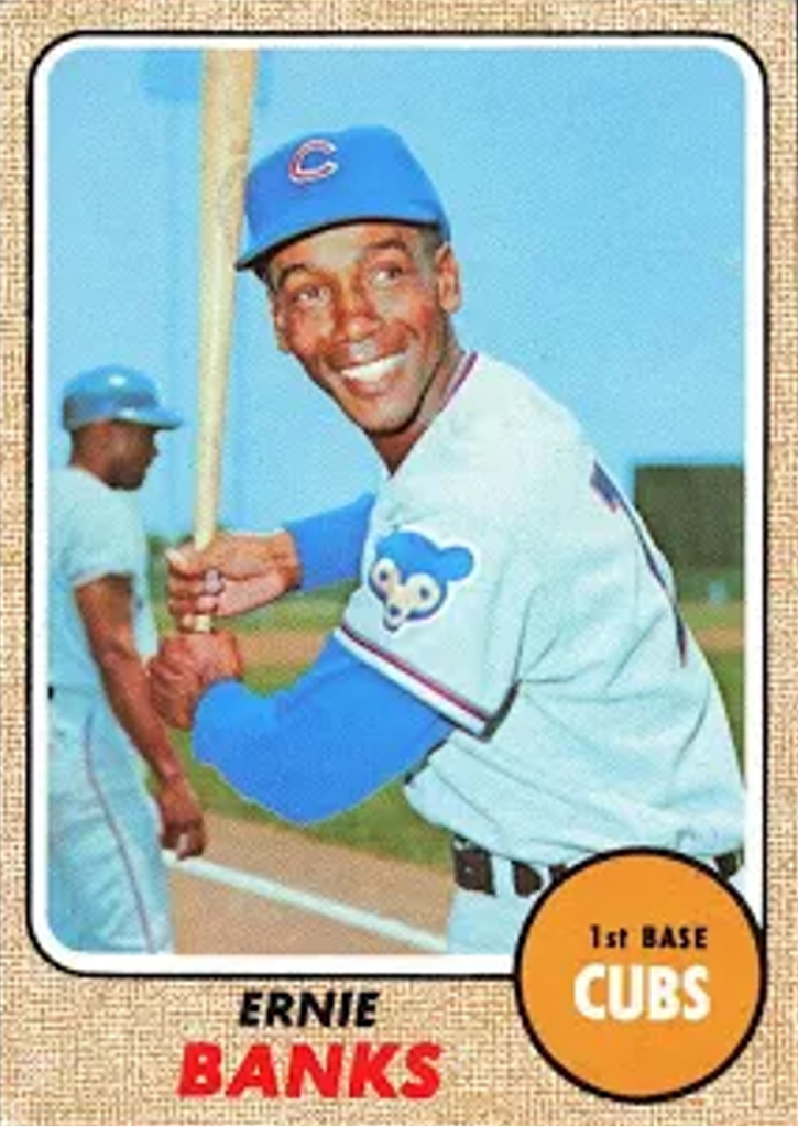 It should be noted that Topps didn’t just always use the same photo exactly as it previously appeared. Often, the photo would be “cropped” (framed) a little differently. In the case of Ernie Banks, for instance, his 1969 card is a tighter shot – less background showing – than the 1968 card. Nevertheless, it is the same photo.