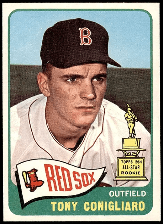 Key rookie cards in the ’65 set include Houston’s Joe Morgan (#16), St. Louis’ Steve Carlton (#477), Kansas City’s Jim “Catfish” Hunter (#526) and Cincinnati’s Tony Perez (#581). Carlton tops the list in value at $450, while Hunter is $170, Morgan is $165 and Perez is $125.