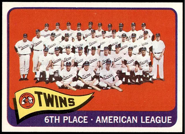 Two other cards stand out in the 1965 Topps set. Jim Kaat’s card (#62) had his last name spelled Katt. No correction was made, so no special value is assigned to this error.