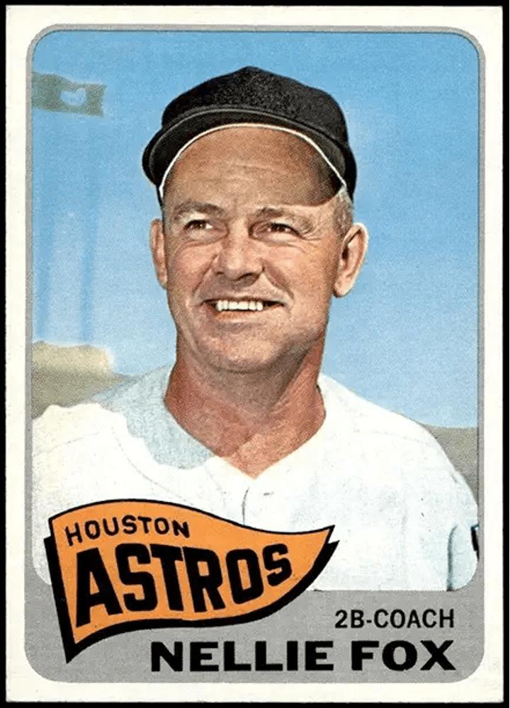 Nellie Fox (#485) ended his career with the Astros, as did Don Larsen (#389). Yogi Berra’s final card (#470) as a player with the Mets included the unique designation on the front of “Catcher-Coach.”