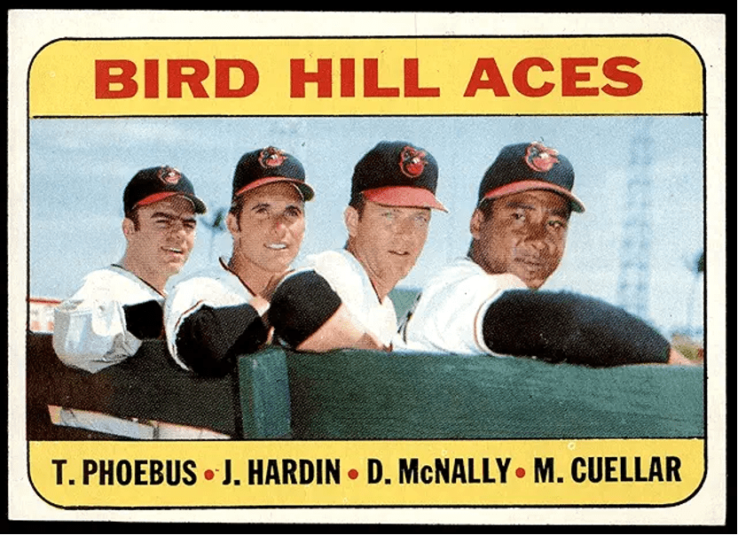 • 1967: The 13 multis in ’67 were the most since 1959. All were team themes – players on each card were from the same team. Some of the better ones were: “Bengal Belters” (#216) with Detroit’s Norm Cash and Al Kaline; “Twin Terrors” (#334) with Minnesota’s Bob Allison and Harmon Killebrew; “Cards Clubbers” (#63) with St. Louis’ Lou Brock and Curt Flood; and “Bird Bombers” (#521) with Baltimore’s Boog Powell and Curt Blefary.
