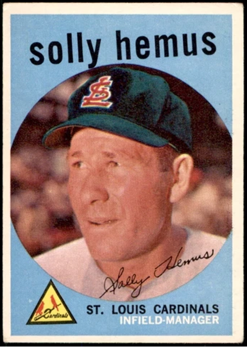 Solly Hemus was a 10-year major league veteran infielder when he was named manager of the St. Louis Cardinals before the 1959 season. Hemus began as a player-manager, although he only appeared in 24 games for the Redbirds that year and played his last game in mid-June. As a manager, Hemus was lacking and lasted only two and a half seasons. According to several sources, many players and even some of his own coaches thought he was a jerk. Black players on the team — especially Bob Gibson and Curt Flood — felt he was racist.