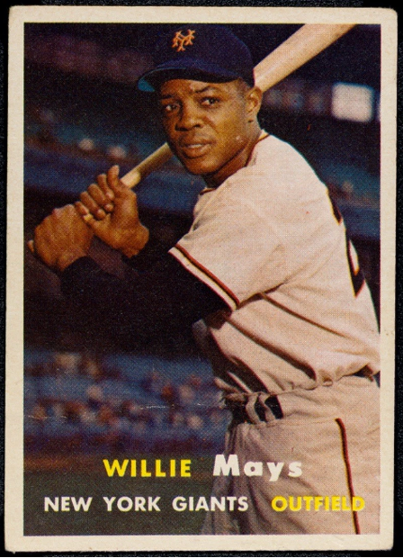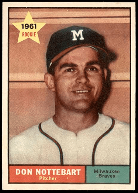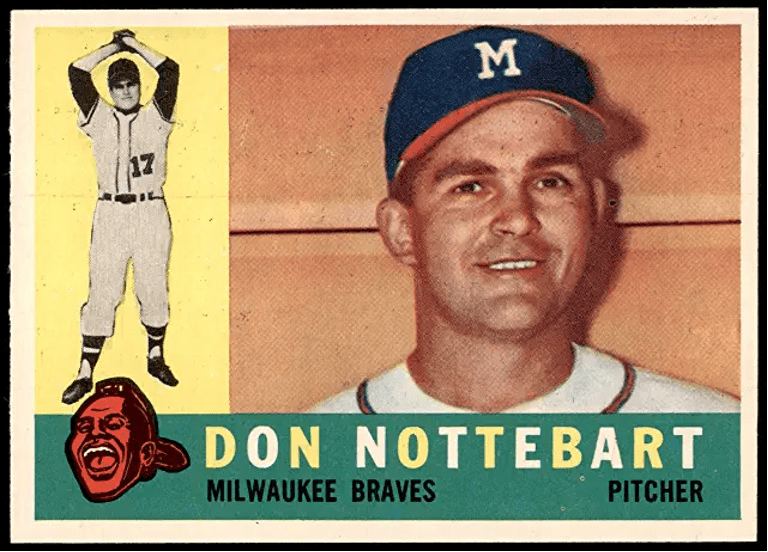 Even moldier and oldier than Tommie Aaron, Topps bought Bowman in 1956 – including their photo files. (They just took the old photo, changed the cap logo and whited out the front of the uniform.)