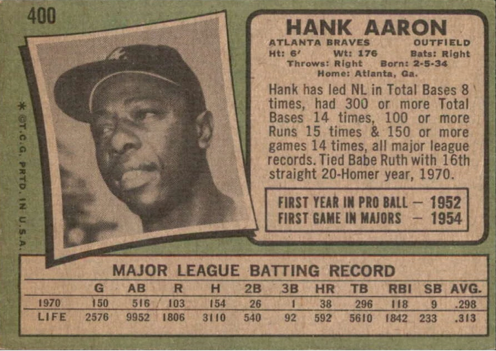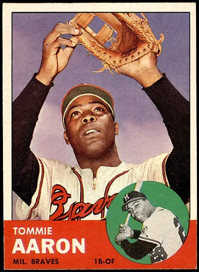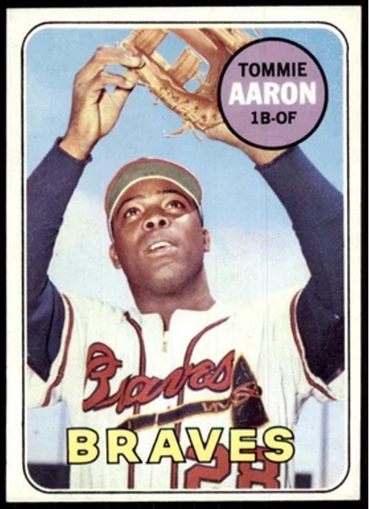 In 1969, Topps reached back six years for their Tommie Aaron photo. Talk about a moldy oldy.
