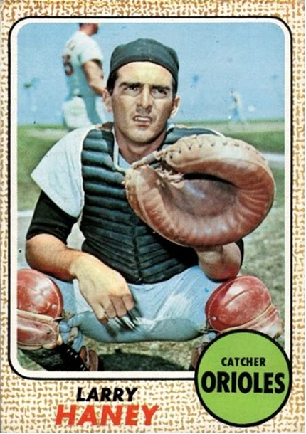 Topps outdid themselves by flipping the 1968 Larry Haney negative – making him a left-handed catcher.