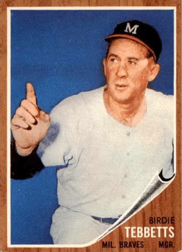 Once in a while Topps would dig deep into their archives for an ancient photo to recycle. Like dig really, really deep. The Tommie Aaron and Birdie Tebbetts cards below use the same photo six and seven years apart respectively. … In addition, Topps would repeat photos across product lines — like using the same shot that appears on a base set card and again on a coin or poster.