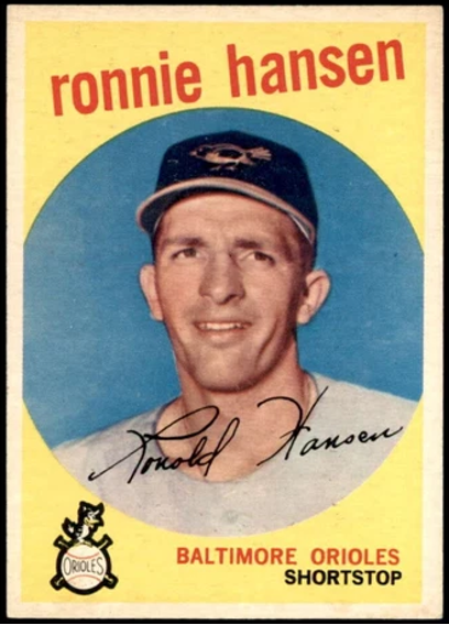 In an unusual move, Ron Hansen had his own card in 1959, but then had a “Rookie Star” card in ’60.