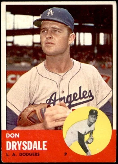 DON DRYSDALE: The big 6-foot, five-inch righthanded starting pitcher liked acting in bit parts, as this was just one of many television appearances he made during the 1960s and ’70s. His career was good enough to warrant Hall of Fame induction, as he posted a 209-166 major league record, with a 2.95 lifetime ERA. He won over 20 games twice, was a Cy Young Award winner and multi-year All-Star. Drysdale spent his entire 14-year career wearing Dodger blue.